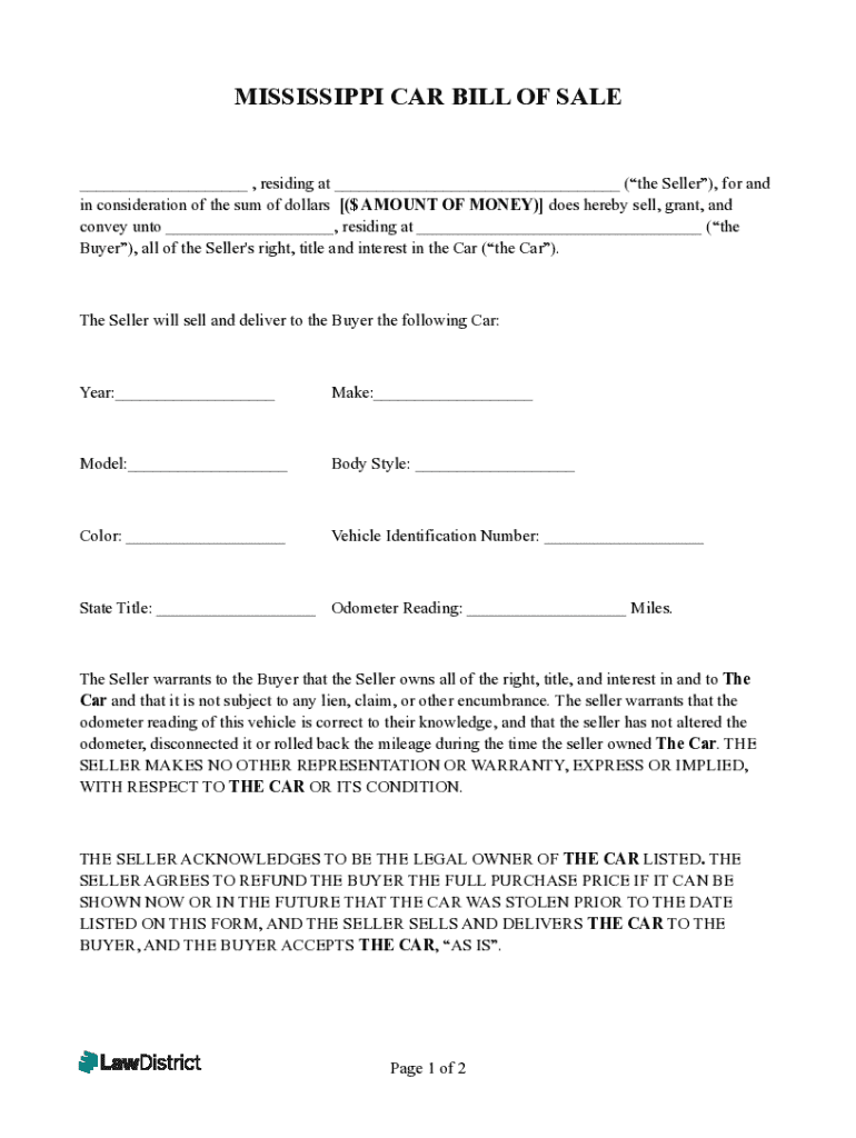 Step-by-step instructions for filling out the Mississippi Car Bill of Sale Form