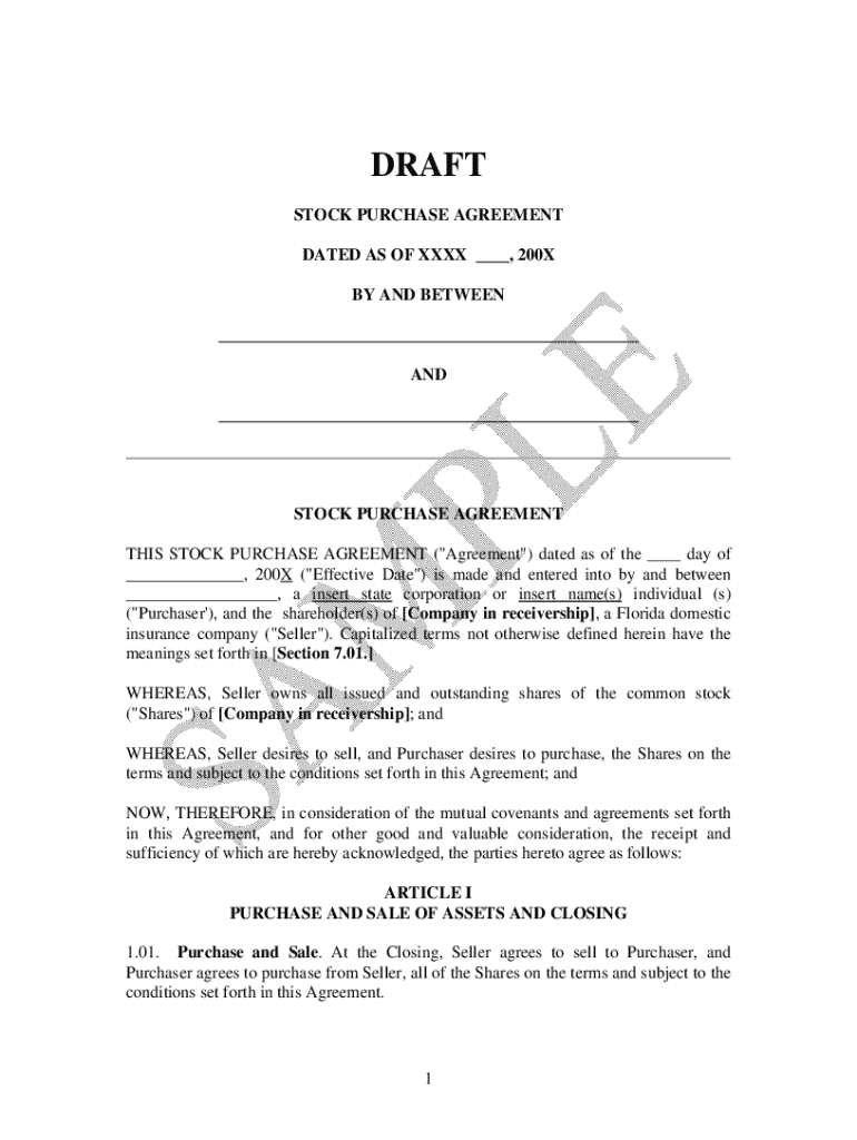 Get the free Stock Purchase Agreement