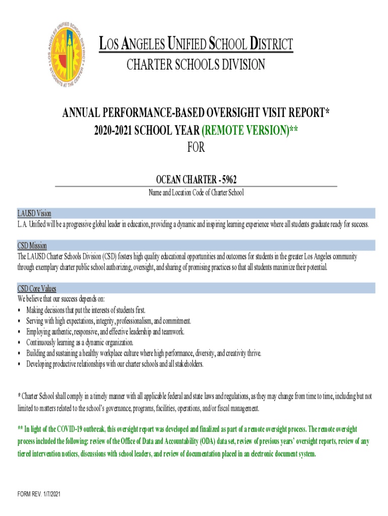 Get the free Annual Performance-based Oversight Visit Report