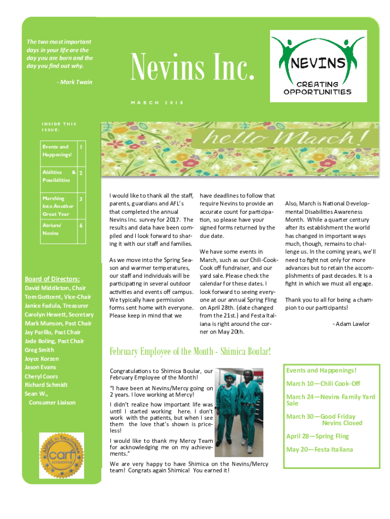 Get the free Nevins Inc. Monthly Newsletter - March 2018
