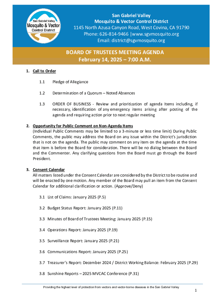 Get the free Board of Trustees Meeting Agenda
