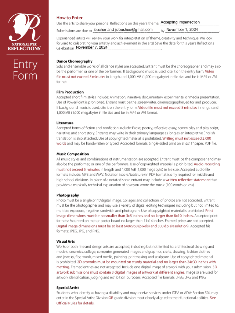 Navigating the National PTA Reflections Program Form: A Comprehensive Guide