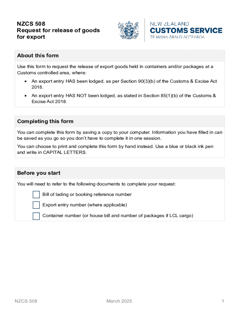 Accurate completion of the nzcs 508 form is critical. Inaccuracies can lead to significant delays in processing, fines, or even legal implications. Hence, it's pivotal for individuals and organizations to devote time and care to the information they submit.