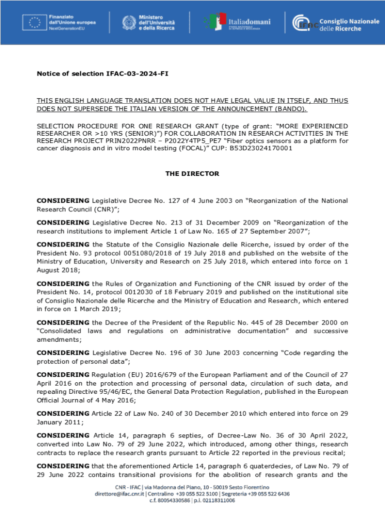 Get the free Notice of Selection Ifac-03-2024-fi