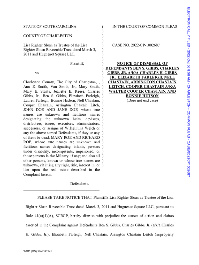Get the free Notice of Dismissal of Defendants