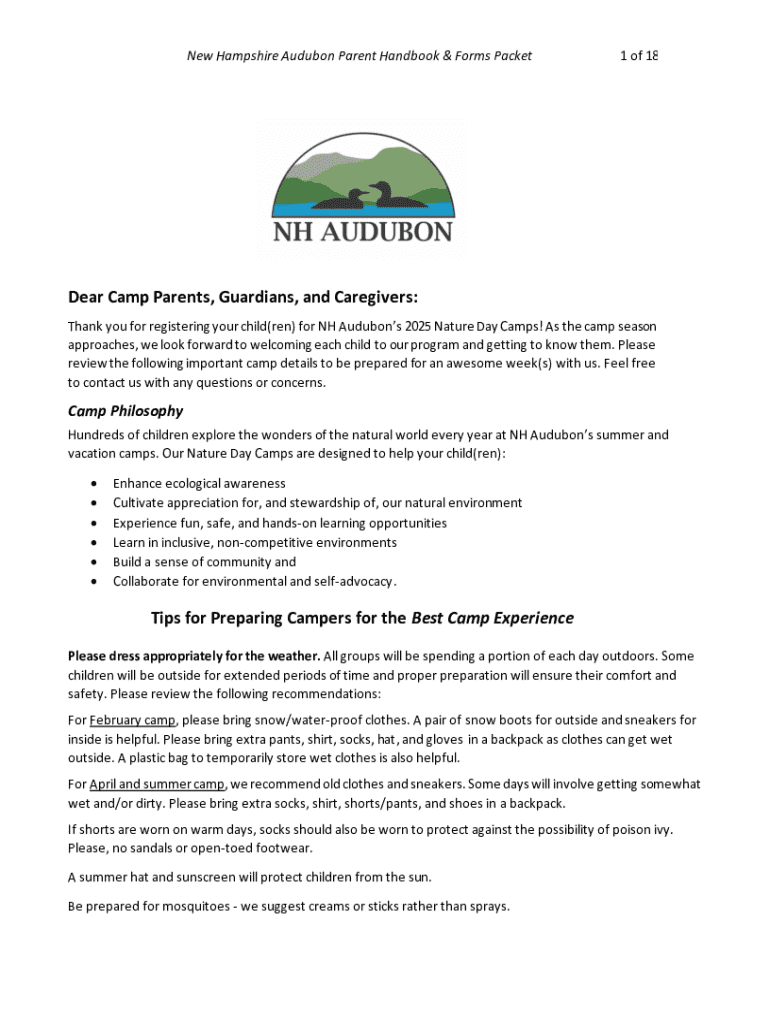 Get the free New Hampshire Audubon Parent Handbook & Forms Packet