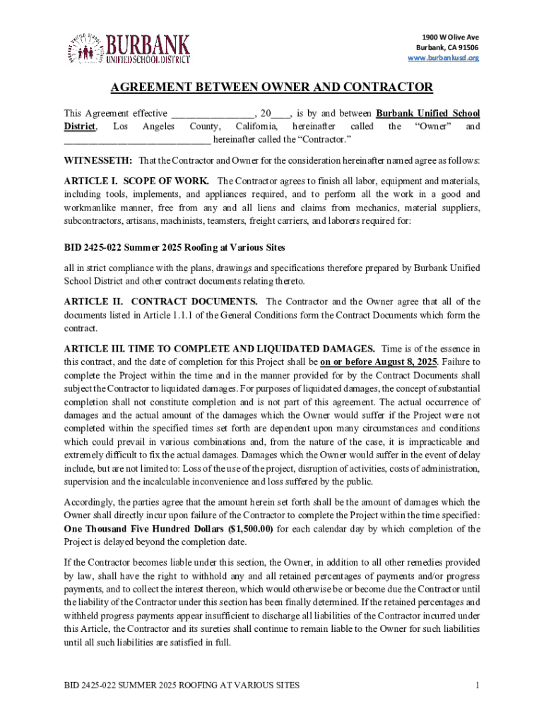 Get the free Agreement Between Owner and Contractor