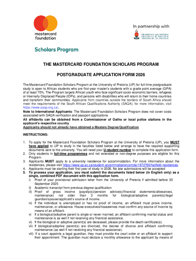 Get the free Mastercard Foundation Scholars Program Postgraduate Application Form 2026