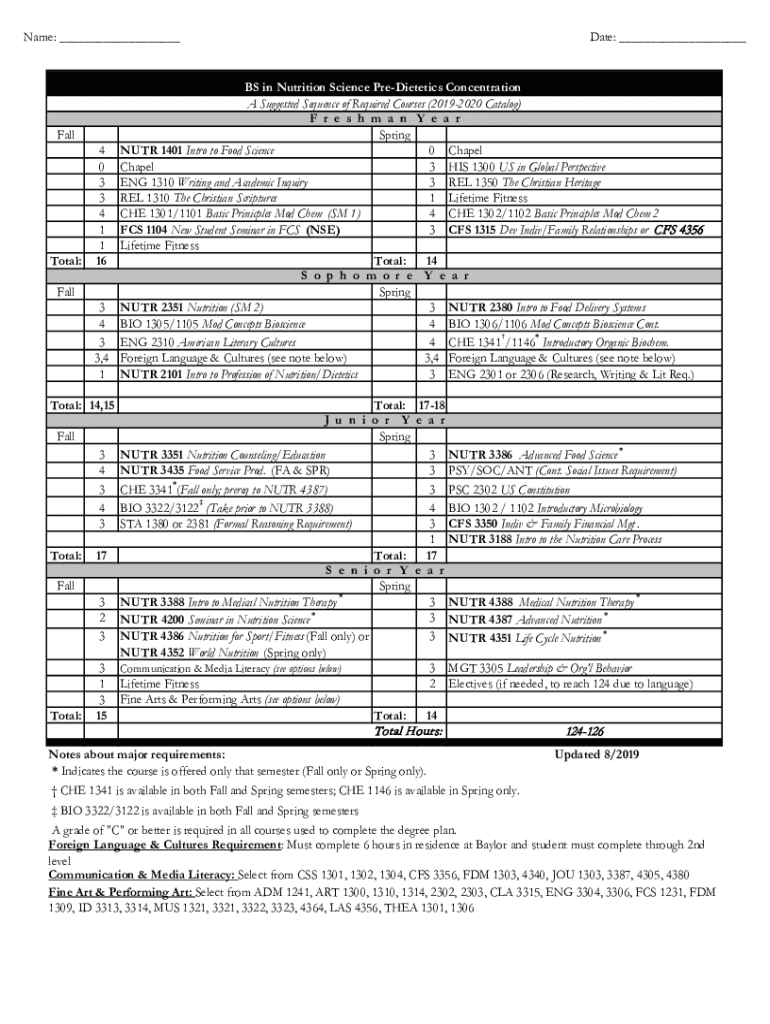 Get the free Bs in Nutrition Science Pre-dietetics Concentration Course Sequence