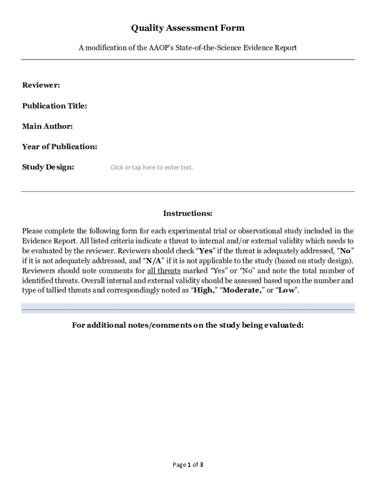 The importance of quality assessments cannot be overstated; they play a crucial role in minimizing errors, enhancing customer satisfaction, and ensuring regulatory compliance. For example, in healthcare, quality assessment forms can help track treatment outcomes, while in education, they are vital in evaluating teaching methods.