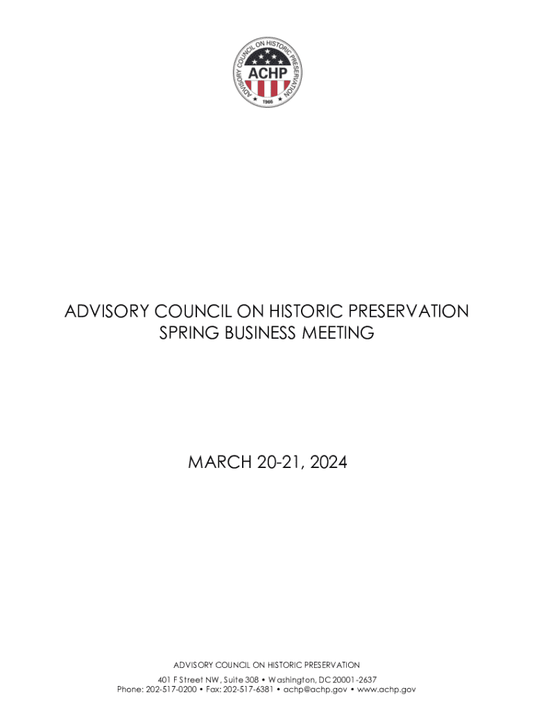 Get the free Advisory Council on Historic Preservation Spring Business Meeting