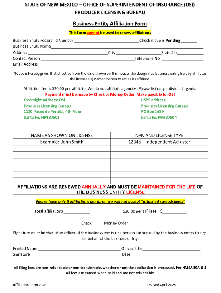 Many queries arise regarding deadlines and specific submission guidelines for the business entity affiliation form. Businesses should familiarize themselves with these aspects to optimize compliance. Information related to when to submit updates, what to disclose, and best practices is crucial for ensuring smooth operations.