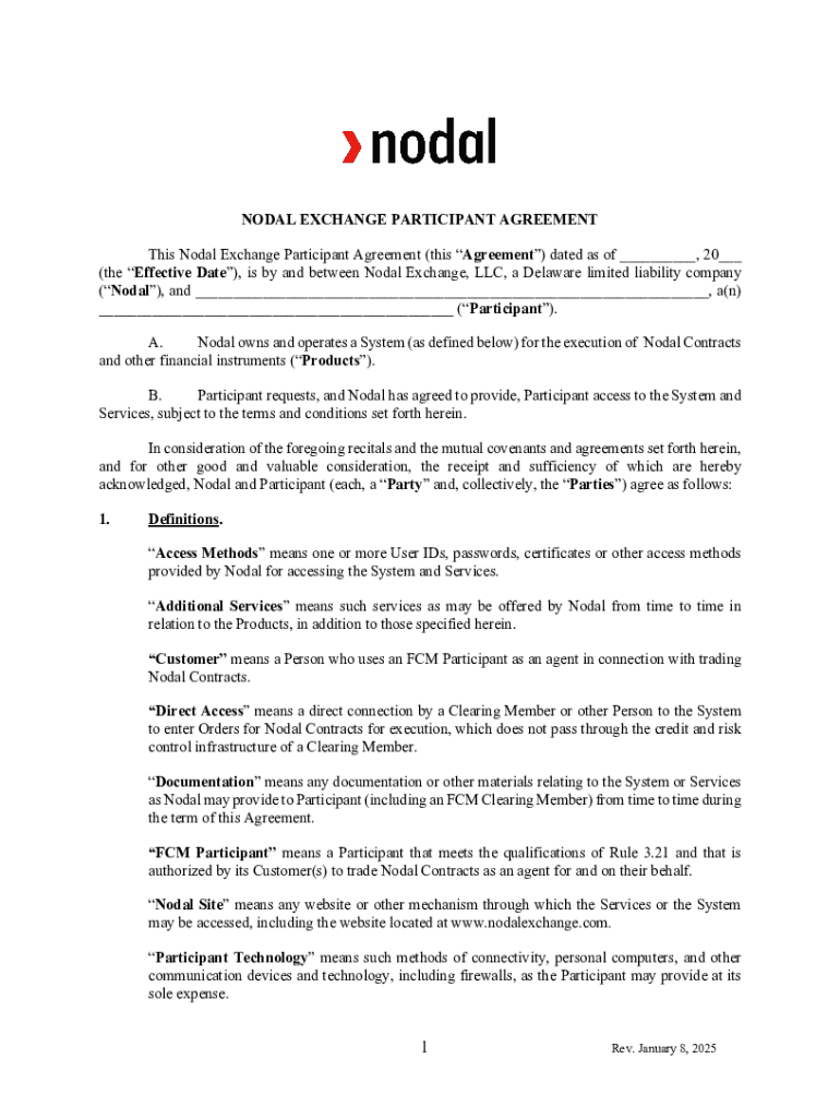 Understanding other relevant agreements and forms can enhance your experience as a participant in the Nodal Exchange. These documents often intersect with your participant agreement, providing greater context for your trading behavior.