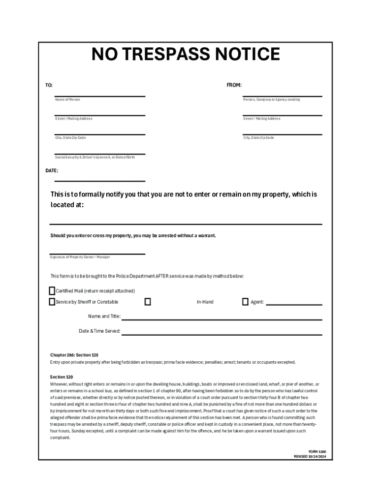 Understanding the No Trespass Notice Form: A Comprehensive Guide