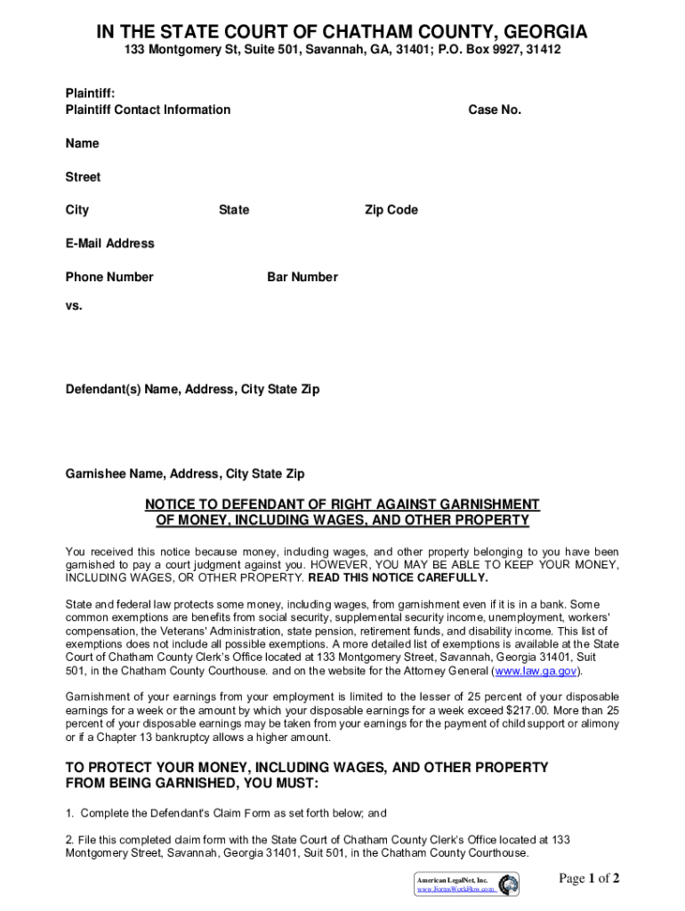 Get the free Notice to Defendant of Right Against Garnishment of Money, Including Wages, and Othe...