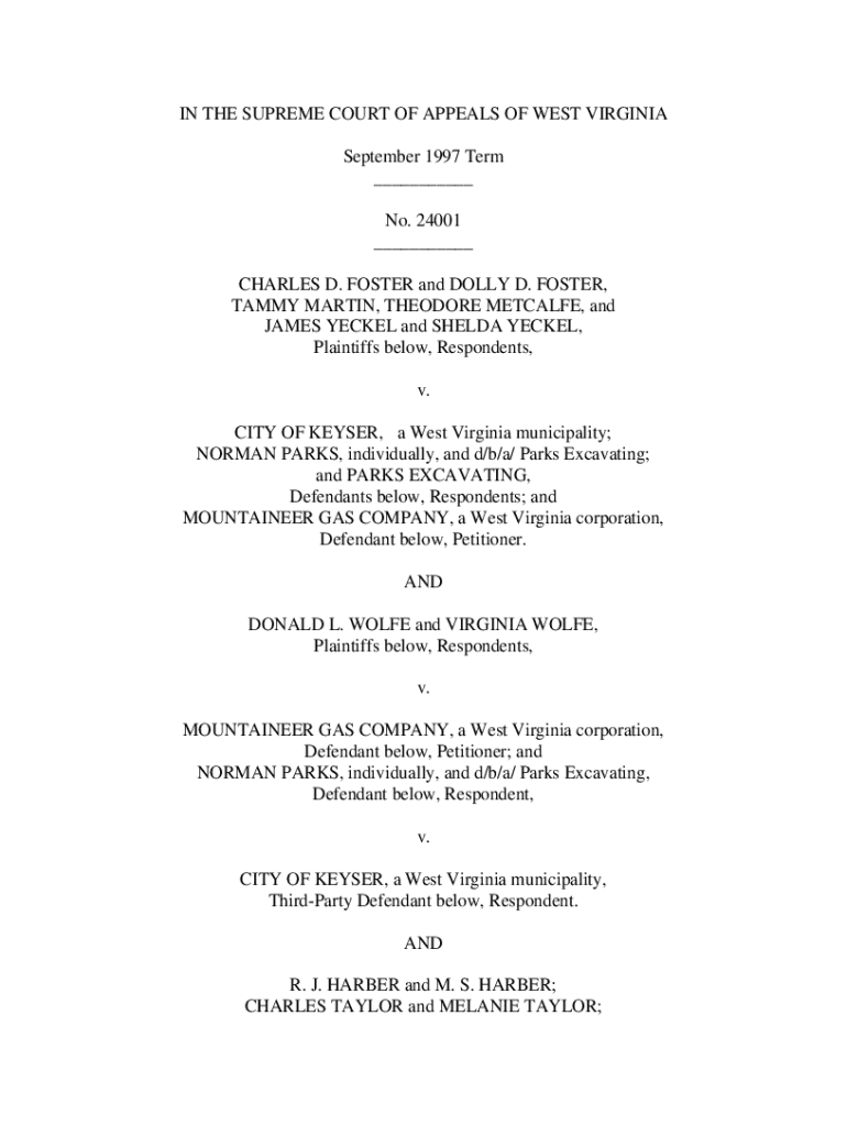 IN THE SUPREME COURT OF APPEALS OF WEST VIRGINIA September 1997 Term ___ No. 24001 ___ CHARLES D. FOSTER and DOLLY D. FOSTER, TAMMY MARTIN, THEODORE METCALFE, and JAMES YECKEL and SHELDA YECKEL, Plaintiffs