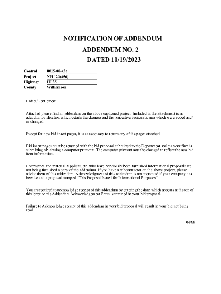 Get the free Notification of Addendum - ftp txdot