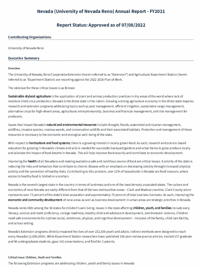Get the free Nevada (university of Nevada Reno) Annual Report - Fv2021