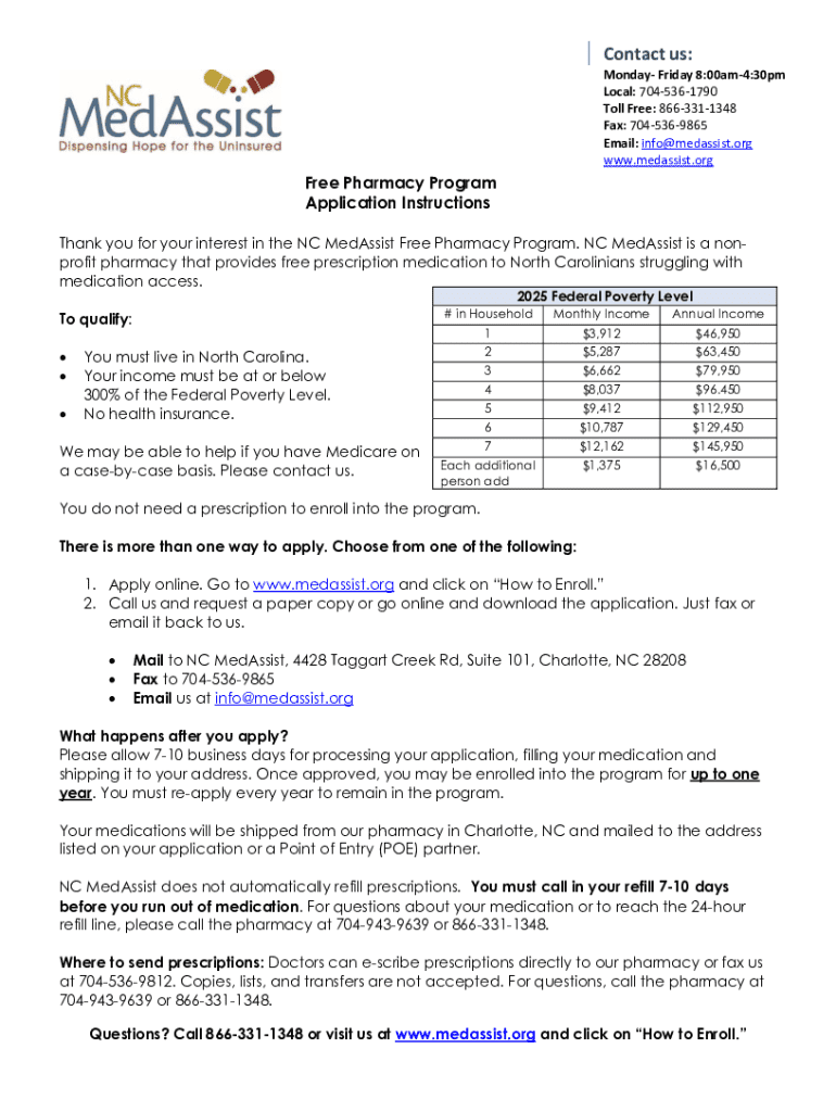The NC MedAssist Pharmacy Program is a crucial initiative designed to help individuals in North Carolina access affordable medications. It addresses the rising costs of prescription drugs, enabling low-income residents to obtain necessary pharmaceutical assistance. This program not only fulfills immediate health needs but also promotes overall well-being by facilitating access to essential medications.