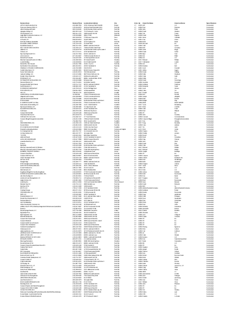 Get the free Business Name Business Phone Location Street Address City State ...