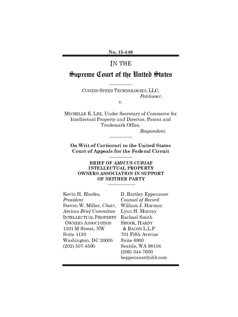 Get the free Brief of Amicus Curiae Intellectual Property Owners Association in Support of Neithe...