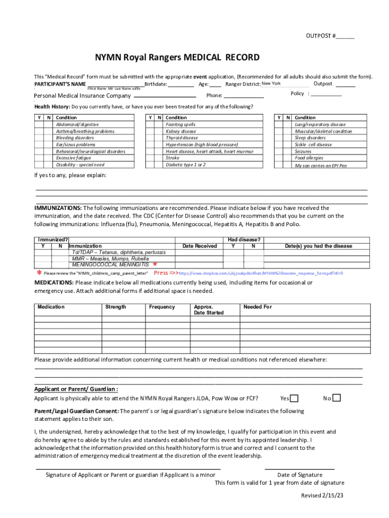 Get the free Nymn Royal Rangers Medical Record