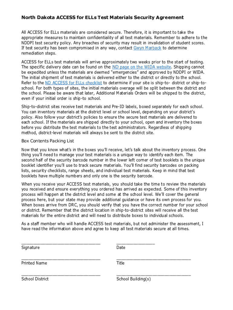 Get the free North Dakota Access for Ells Test Materials Security Agreement