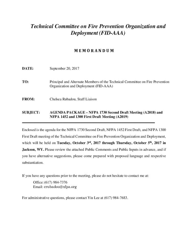 Get the free Nfpa 1730 Second Draft Meeting Agenda