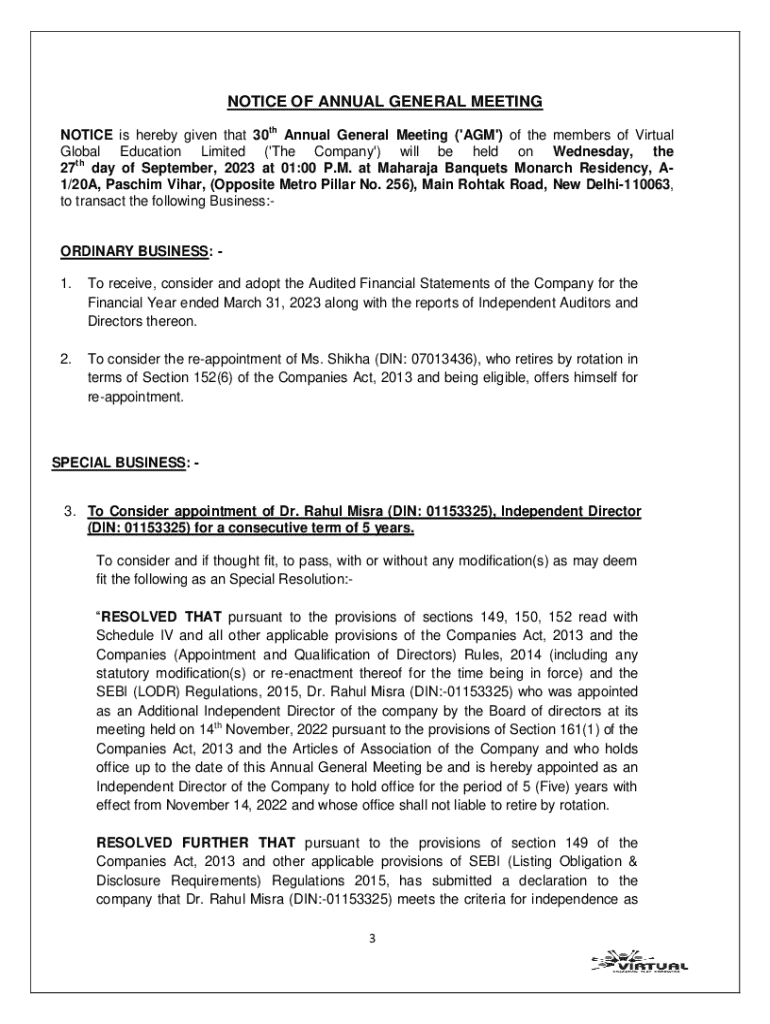 Get the free Notice of Annual General Meeting