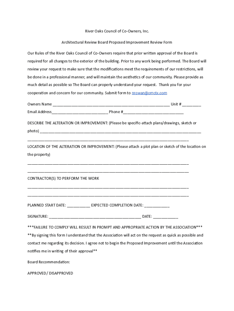 Get the free Architectural Review Board Proposed Improvement Review Form