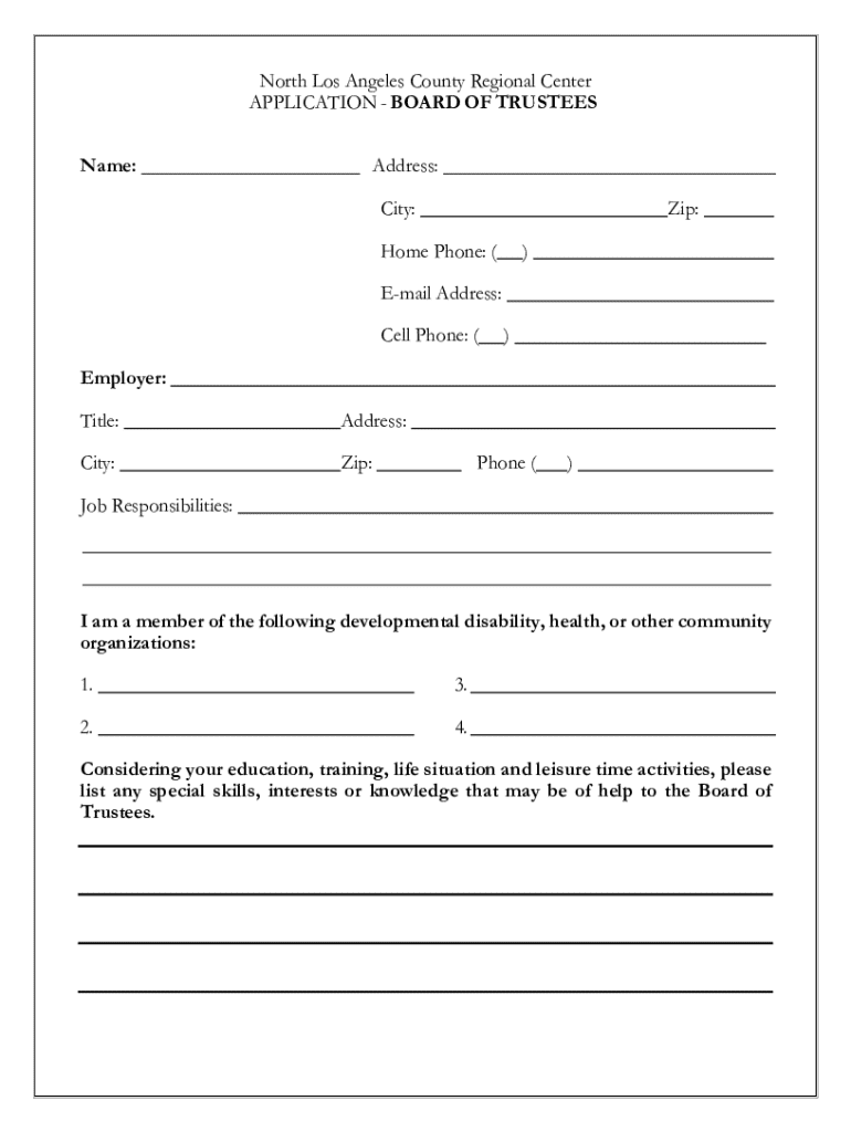Get the free North Los Angeles County Regional Center Board of Trustees Application