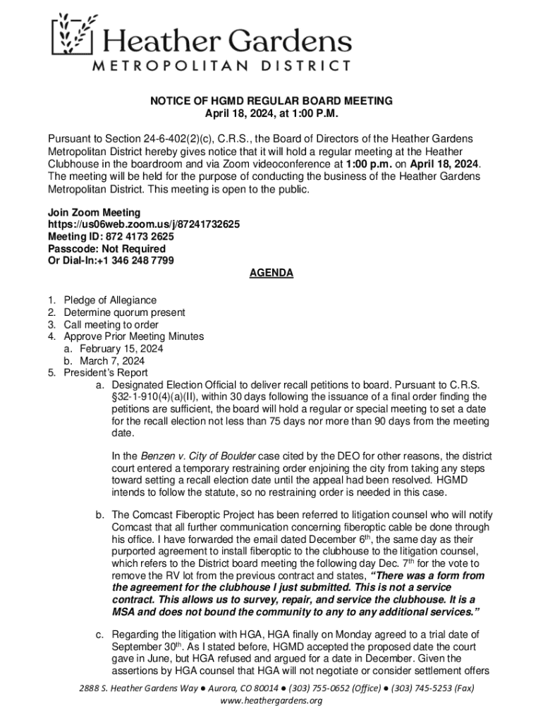 Get the free Notice of Hgmd Regular Board Meeting