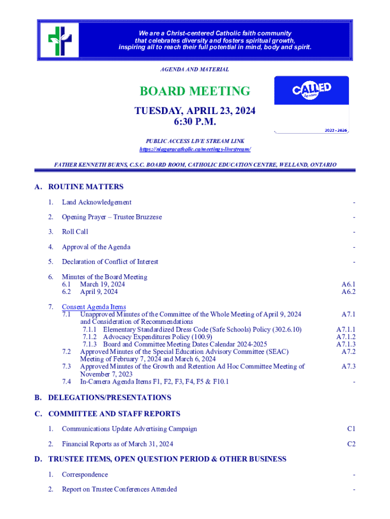 Get the free Niagara Catholic District School Board Meeting Minutes