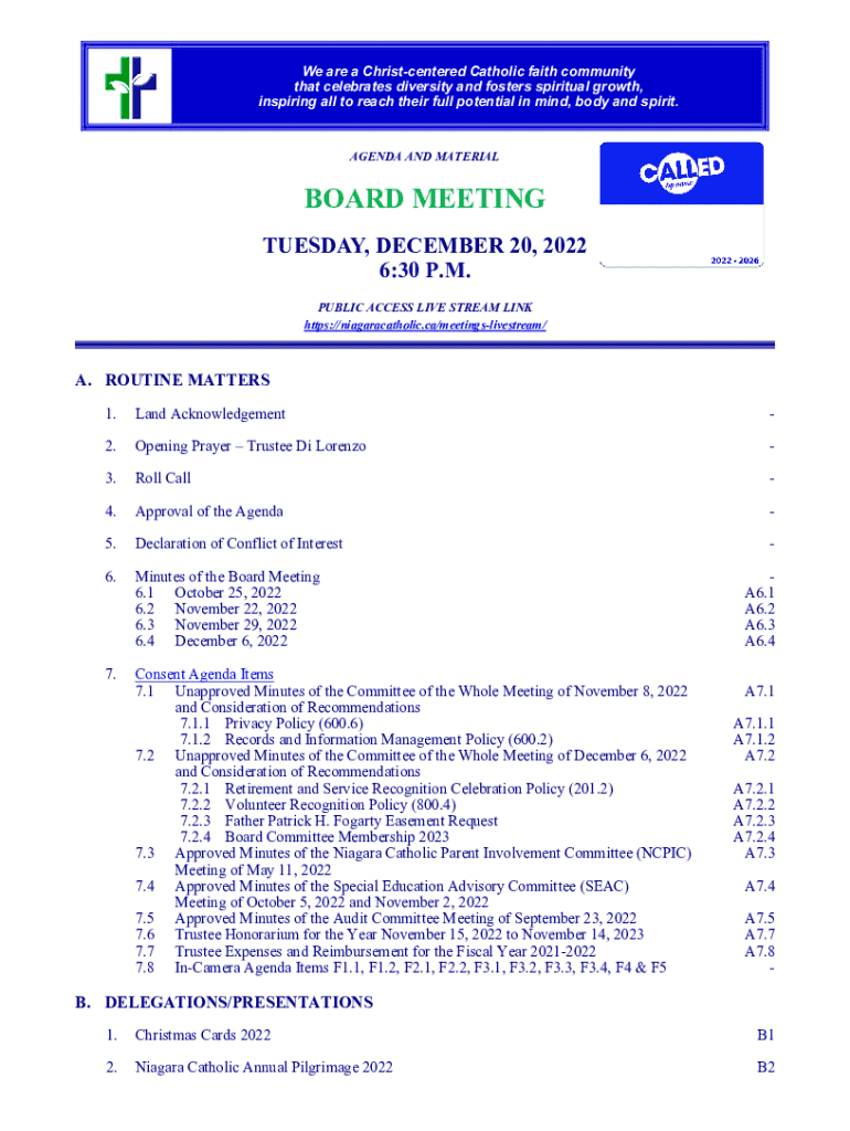 Get the free Niagara Catholic District School Board Meeting Minutes