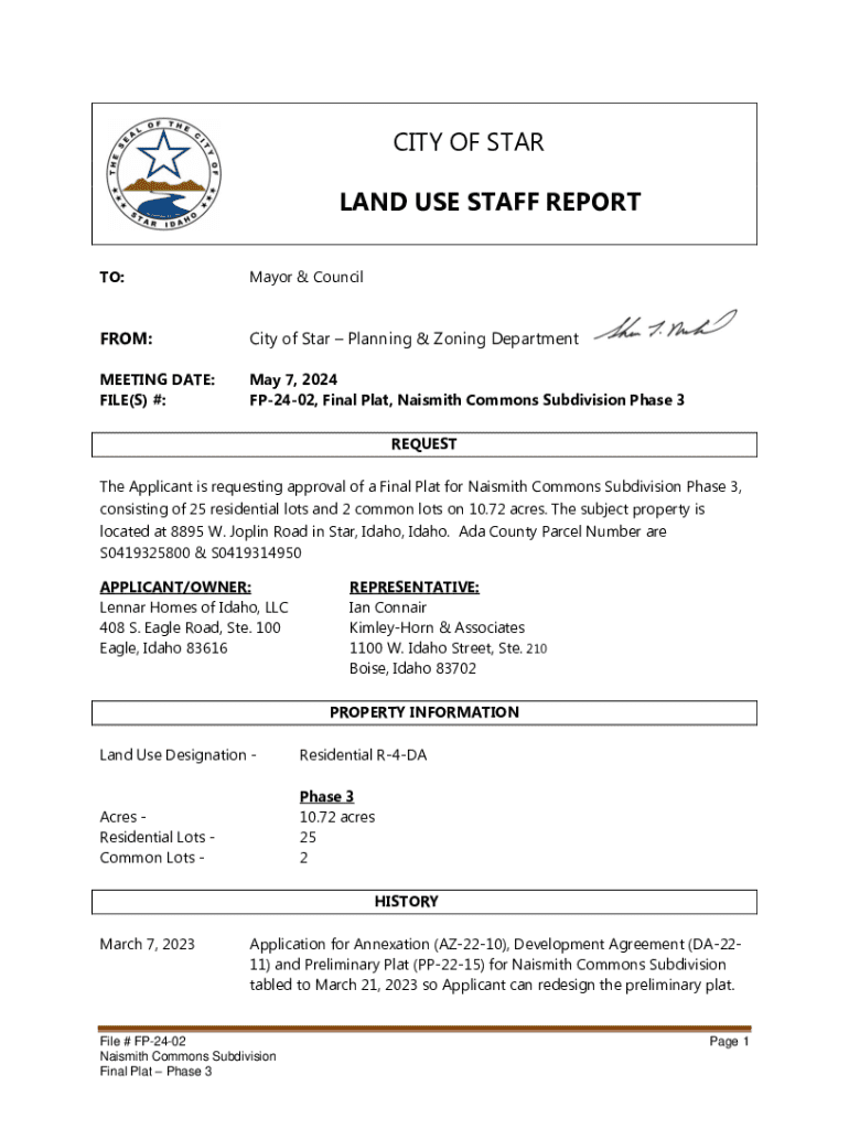Get the free Naismith Commons Subdivision Phase 3 Final Plat