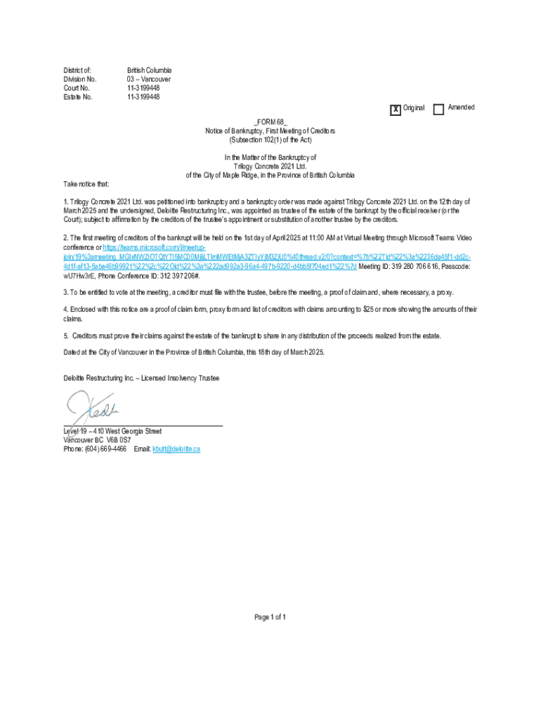 Get the free Notice of Bankruptcy, First Meeting of Creditors