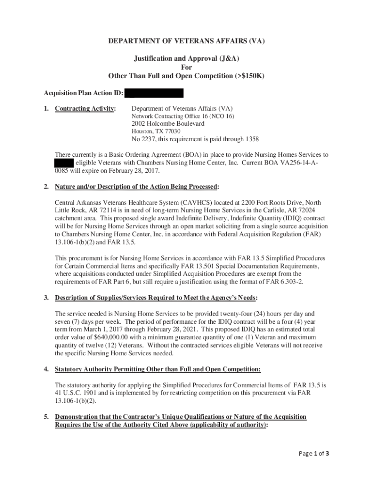 Get the free Justification and Approval for Other Than Full and Open Competition