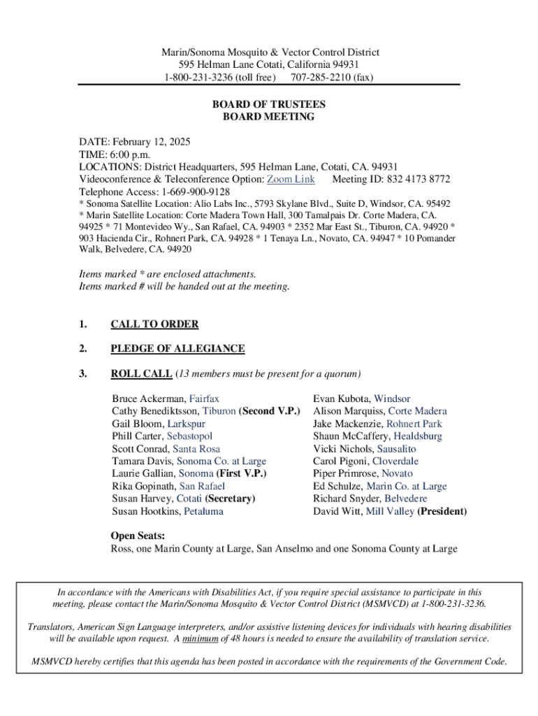 Get the free Marin/sonoma Mosquito & Vector Control District Board Meeting Agenda