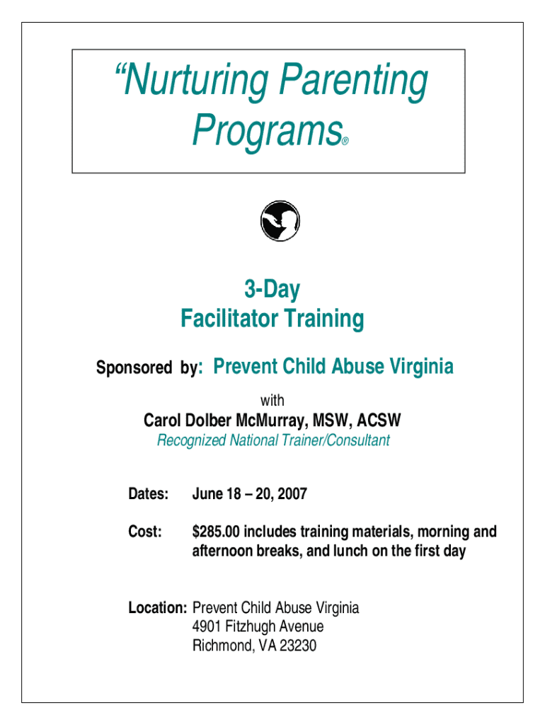Get the free Nurturing Parenting Programs 3-day Facilitator Training Registration