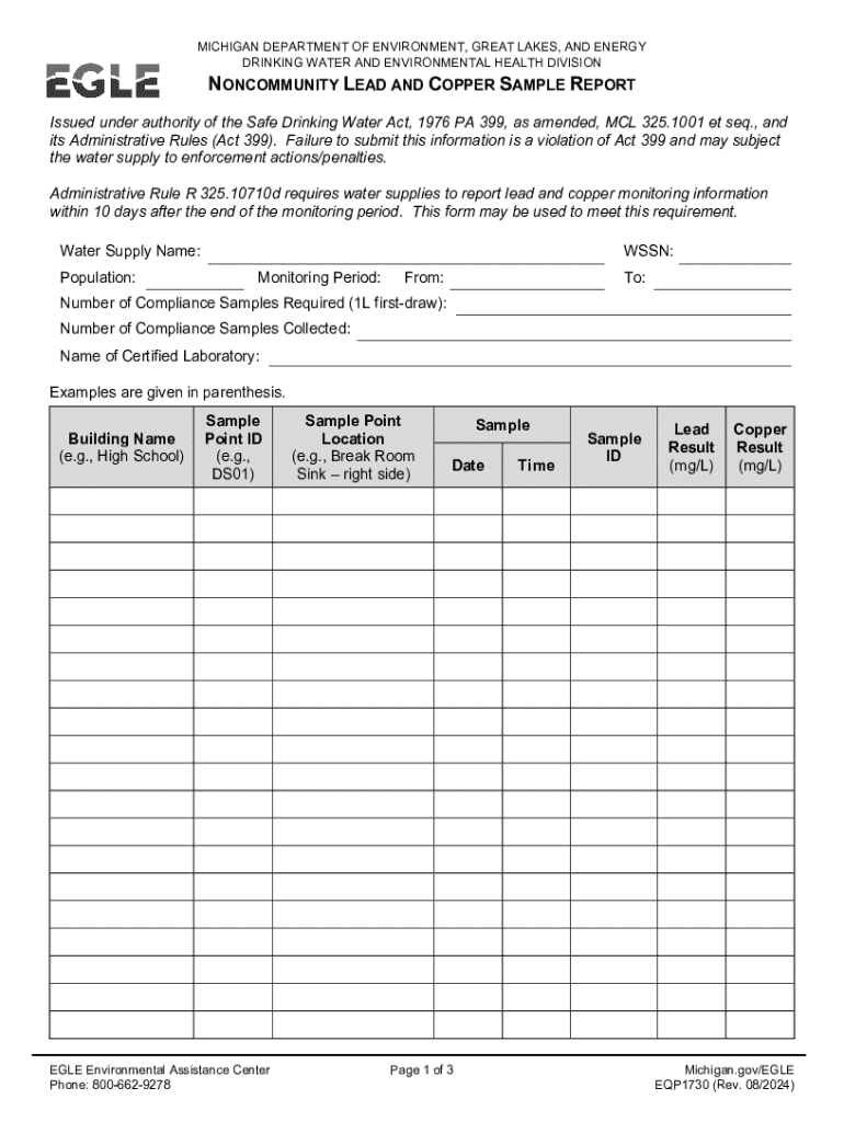 Get the free Noncommunity Lead and Copper Sample Report
