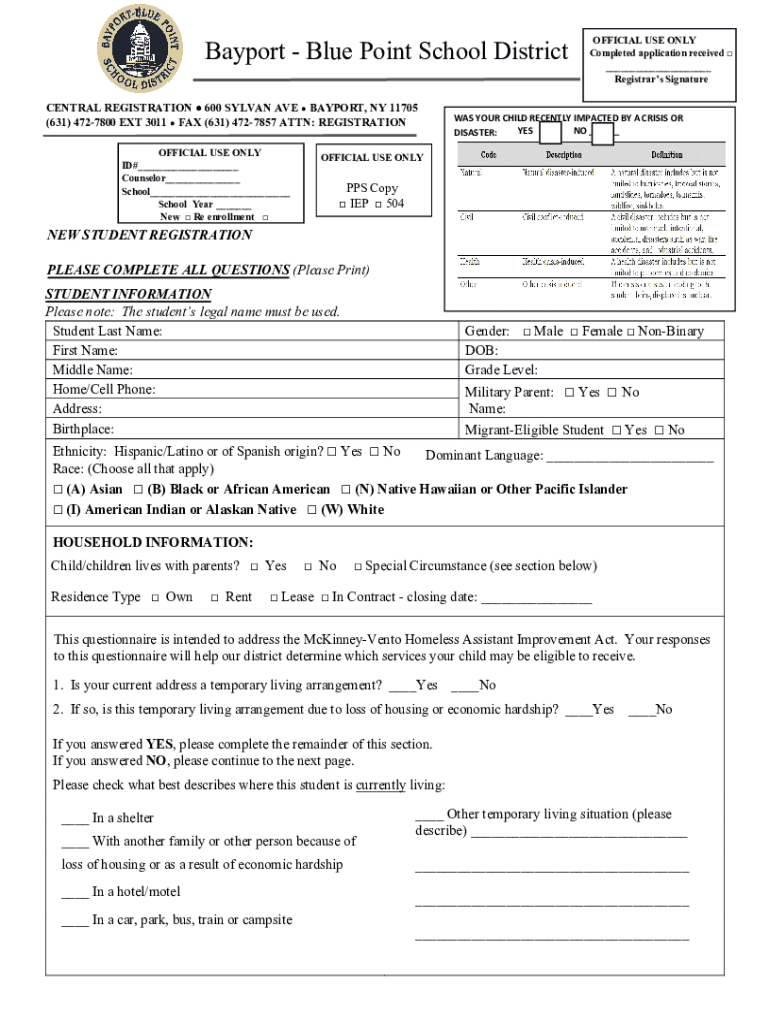 This form is designed for new students, including those transferring from other institutions or those entering the school system for the first time. Understanding the information needed for completion will streamline the process and ensure that you have everything prepared.