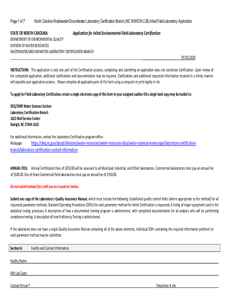 Get the free North Carolina Wastewater/groundwater Laboratory Certification Branch Initial Field-...