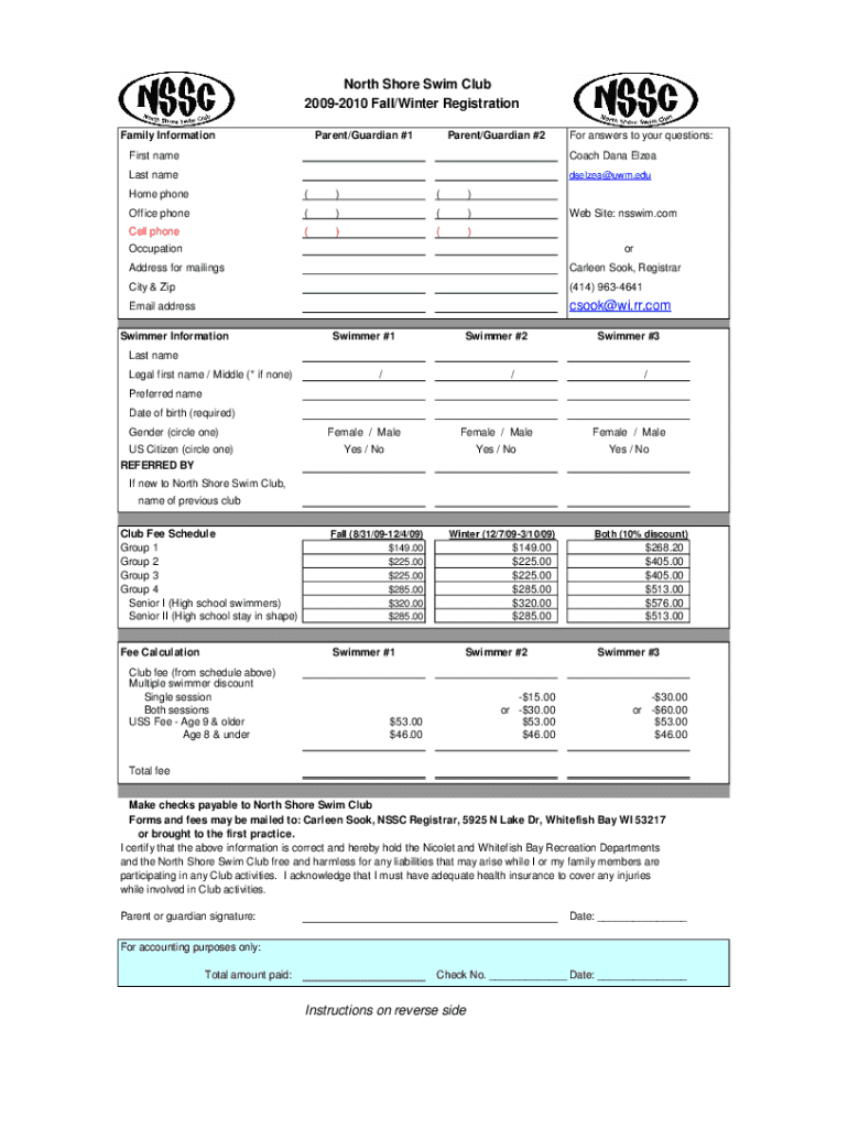 Filling out the North Shore Swim Club form correctly is essential for processing and compliance purposes. Begin by entering your personal details in the designated fields. This typically includes your name, address, phone number, and email. Ensure that all information is accurate to avoid delays in processing your membership.