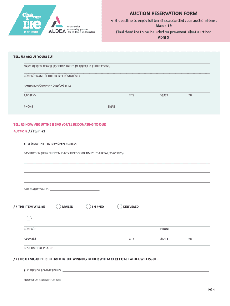 Get, Create, Make and Sign auction reservation form