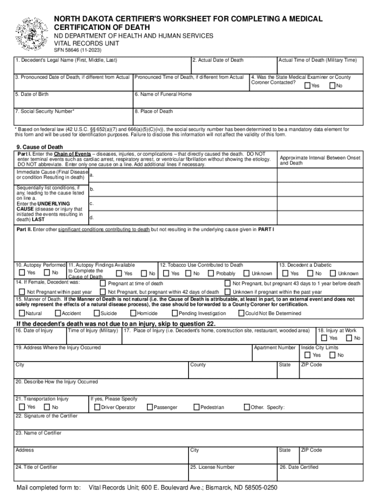 Get the free North Dakota Certifier's Worksheet for Completing a Medical Certification of Death