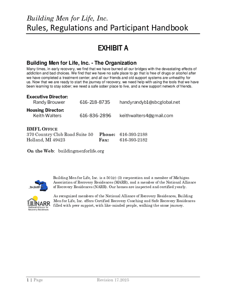 Get the free Building Men for Life, Inc. Rules, Regulations and Participant Handbook