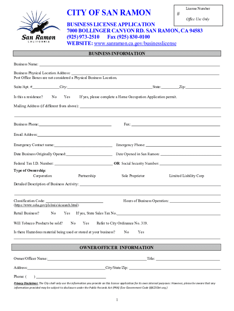 Get the free Business License Application