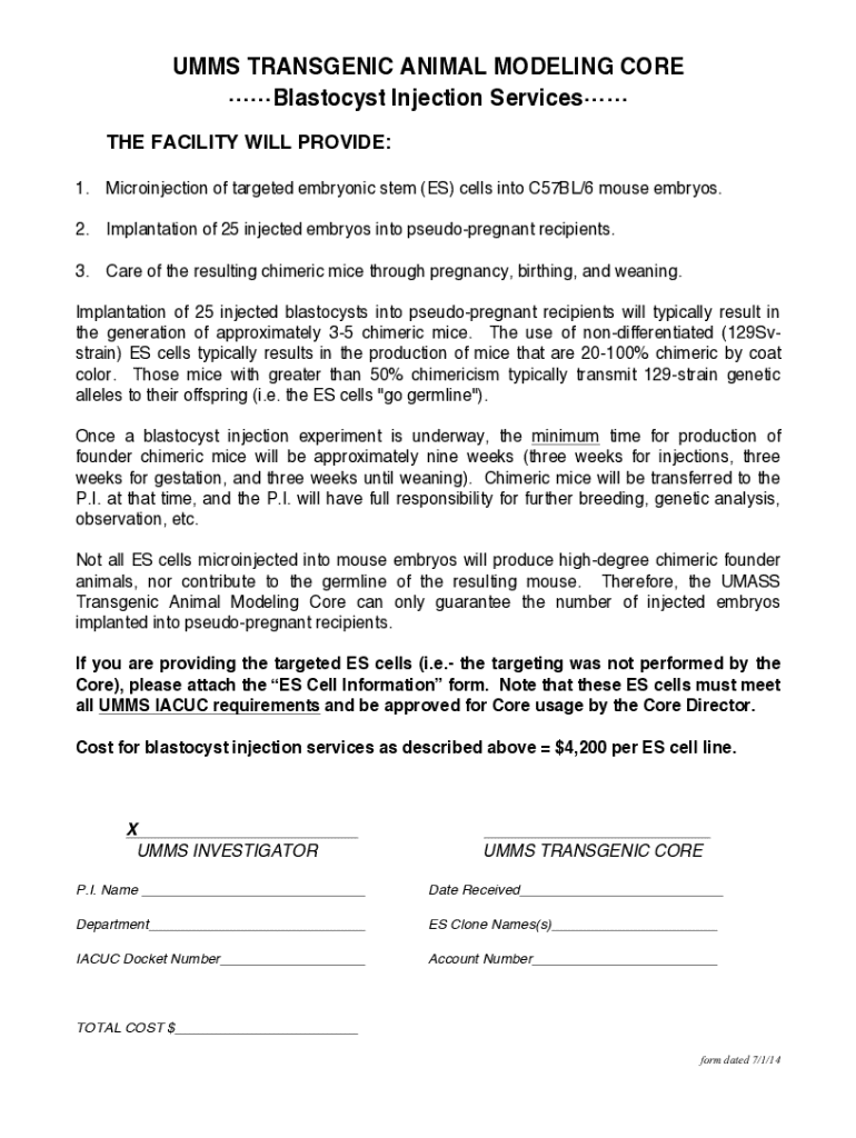 Blastocyst Injection Services Agreement Form: A Comprehensive Guide