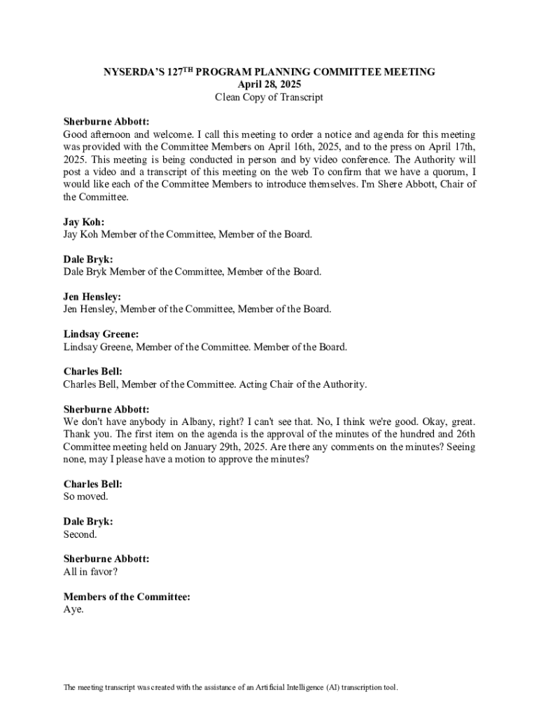 Get the free Nyserda’s 127th Program Planning Committee Meeting
