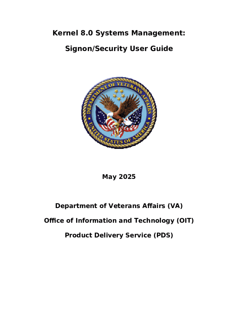 What is Kernel 8.0 Systems Management: Signon/security User Guide Form?